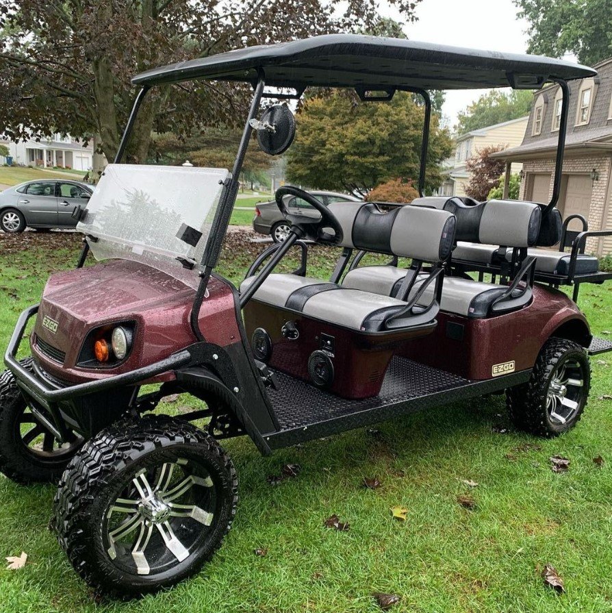 2019 EZGO L6 Custom Gas Golf Cart – 6-Passenger, Slant Roof, Bluetooth, Lifted Build